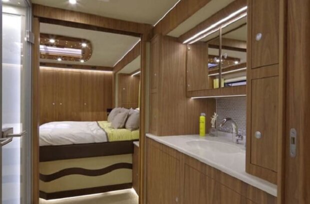 Na délku více než 12 metrů. Jedná se o 5hvězdičkový hotel na kolech, kterým můžete jet kamkoliv.