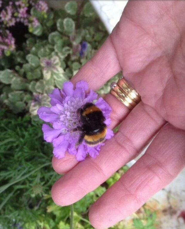 Postavila podobu kryté zahrady, ve které rostly ty nejlepší rostliny a nezabránil jinému hmyzu. Fiona pravidelně dávala do misky rozpuštěný cukr ve vodě, aby čmelák neměl hlad. A to je úžasné-pokaždé, když prošla kolem, vylezl pozdravit svou spasitelku.
