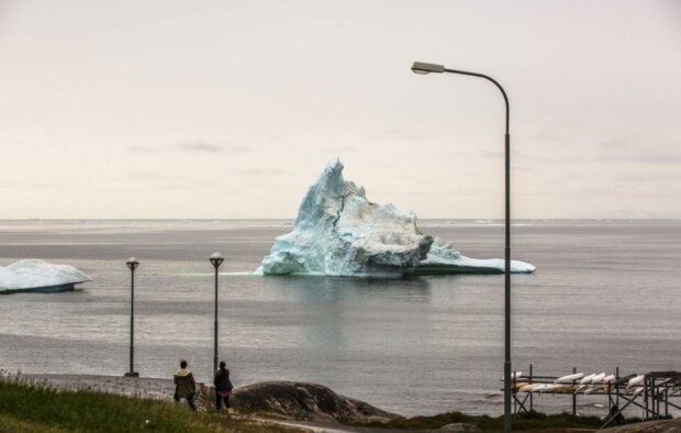 Tady je takový obrovský ledovec, který připlul na východní pobřeží ostrova. Fotografie byla pořízena před deseti lety.