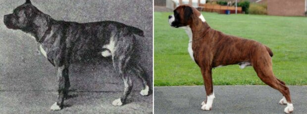 Poprvé byli boxeři představeni světu na výstavě senburnerů v Mnichově v roce 1895. Boxerův předchůdce je nyní považován za zaniklé plemeno bullenbeiser, ale moderní verze boxerů se podařilo získat křížením mastifů a buldoků. Všimněte si, jak se boxerovi za poslední století zkrátil čenich. Bohužel, tato struktura lebky značně komplikovala psům dýchání a termoregulaci.