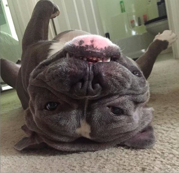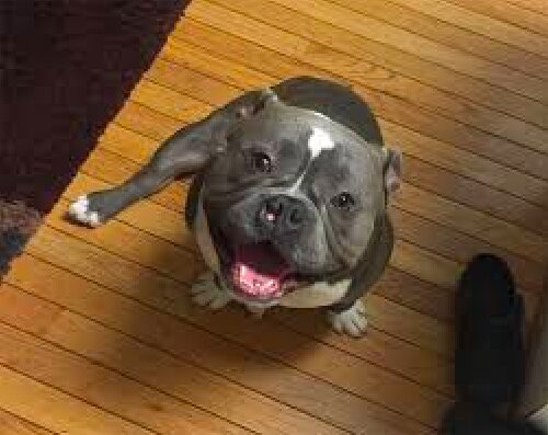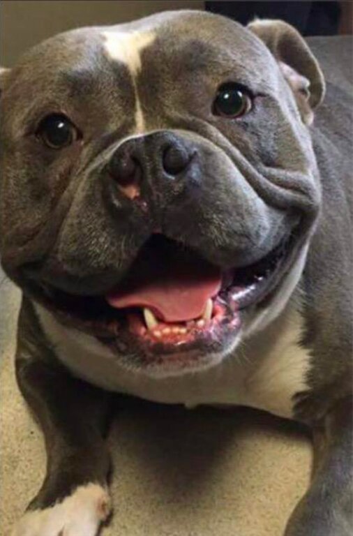 Toto je pes jménem Frank. Žil v útulku a laskaví lidé ho vzali do rodiny.