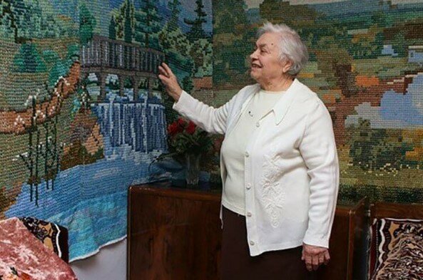Plánovala vyšít obří koberec pro své pravnoučaty. Taková práce pro mistryni není novinkou. Pětadvacet let vytvářela Panno, které je uznáváno jako největší vyšívané plátno na světě! Jeho délka je více než 9 m a šířka-2,5 m. Na jeho vytvoření, umělkyně strávila 25 let života.
