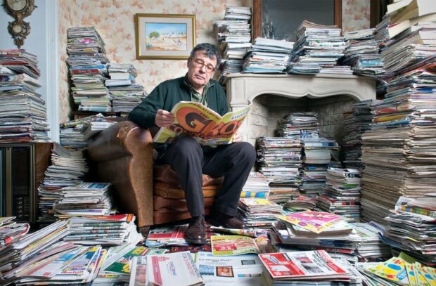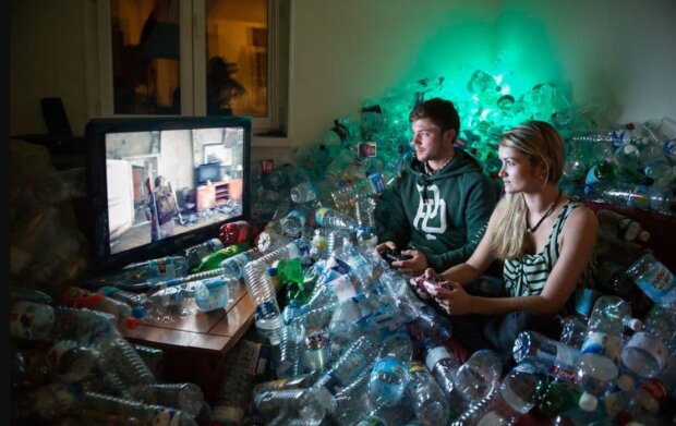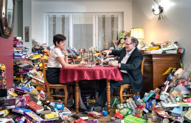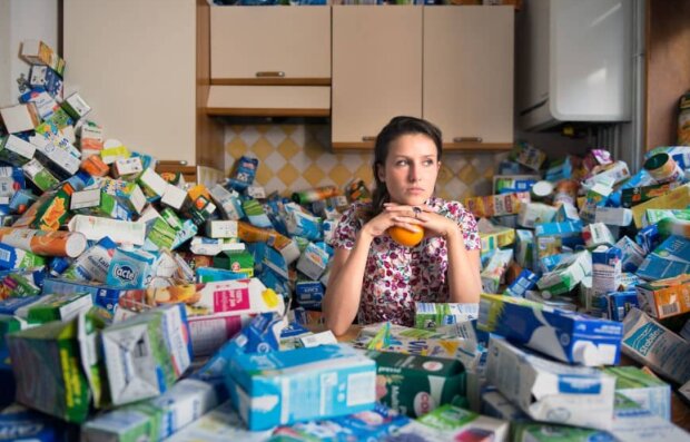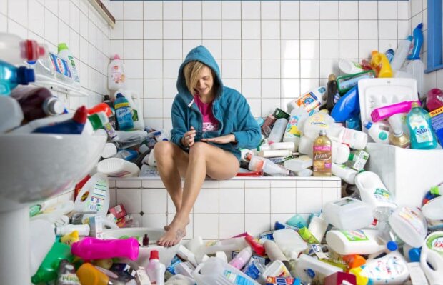 Fotografovi se podařilo shromáždit více než 70 kubických metrů odpadků: 1600 lahví mléka, 4 800 role toaletního papíru a 800 kg novin.
