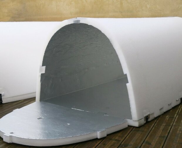 Jedná se o kompaktní, snadno opravitelný, recyklovatelný a vodotěsný úkryt. Navíc absorbuje tělesné teplo a sluneční světlo, aby přirozeně zvýšila teplotu uvnitř.