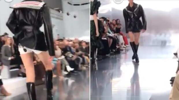 Mladík se před publikem objevil ve vysokých kozačkách a tmavé kožené bundě. Z jeho chůze a výrazu se dalo vyčíst, že je rozčílený. Třeba příčinou vůbec není špatná nálada mladíka? Třeba začínající model jen ukázal svoji osobní “značkovou” chůzi? Motiv zatím není znám. Jedno je však jasné: takovou neobyčejnou přehlídku si všichni budou ještě dlouho pamatovat.