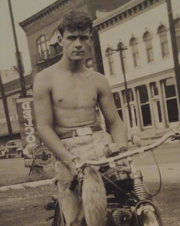 "Můj 14letý dědeček a jeho nové kolo, 1949»