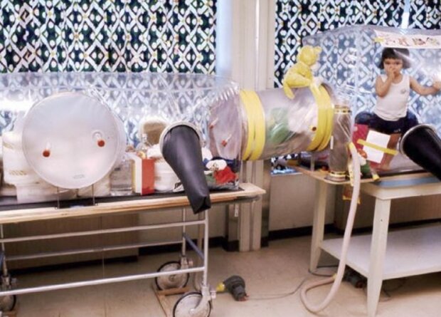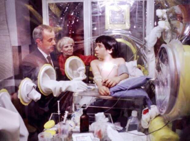 Dítě se narodilo, ale kostní dřeň se nehodila. Chlapec zůstal ve sterilní bublině. Byl pokřtěn dezinfikovanou svěcenou vodou a zůstal ve vazbě po dobu desítek let, téměř až do své smrti.