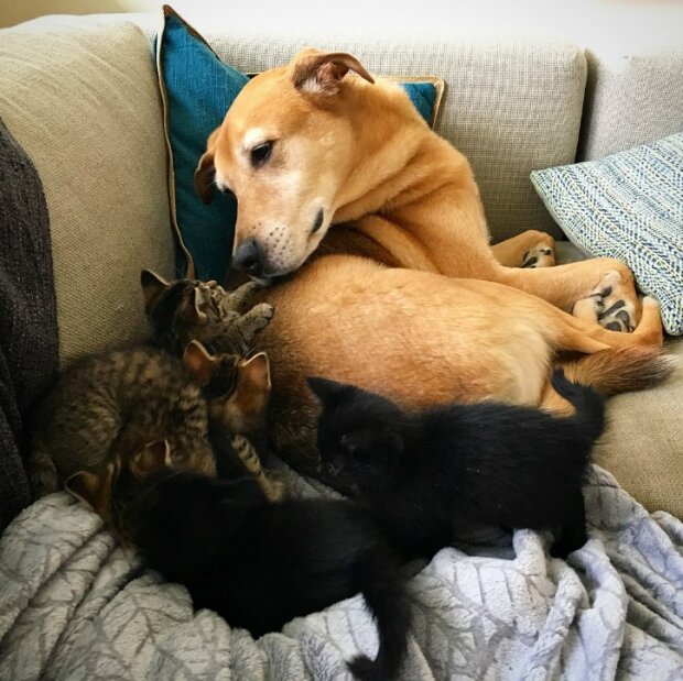 Na toto téma existují příklady ve filmech, karikaturách a literatuře a skutečný život podkopává mnoho situací, které tuto teorii potvrzují. Ale ne hrdina našeho příběhu. Pes Raylan rozbíjí všechny stereotypy, protože se stal skutečnou adoptivní matkou pro koťata!