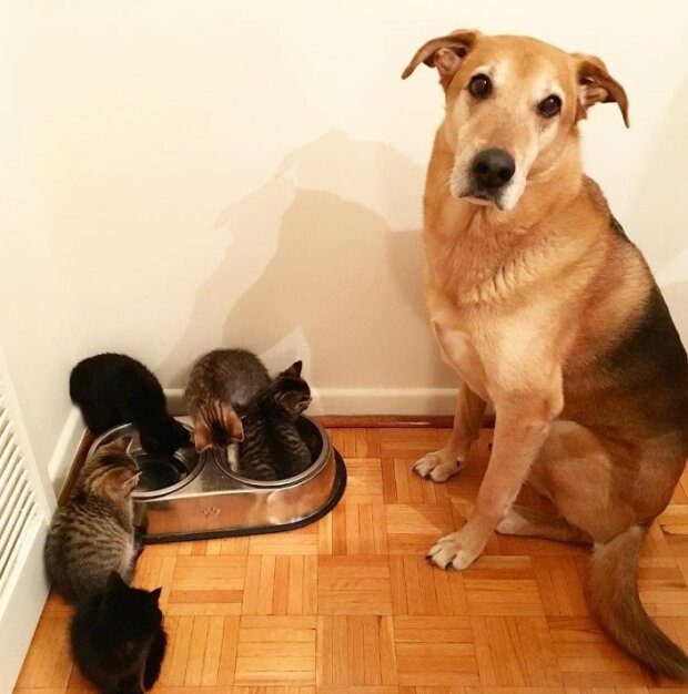 Pes se stal skutečnou matkou pro koťata, která se objevila v domě