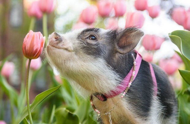 Terapeutické prase jménem Fluffy je hvězdou Instagramu, kde má více než 12 tisíc sledovatelů. Perfektní kombinace pro nezapomenutelné focení!