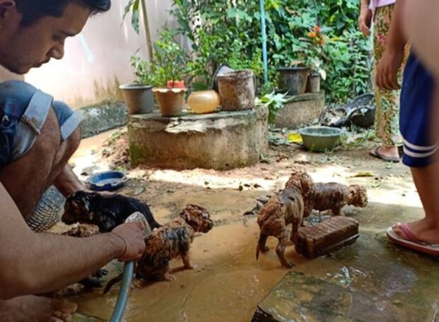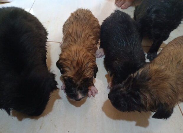 Zatímco Shurachet umýval psy z husté nečistoty, přemýšlel: jak se tam dostali? Štěňata byla velmi malá, je možné, že bylo jím jen pár dní.