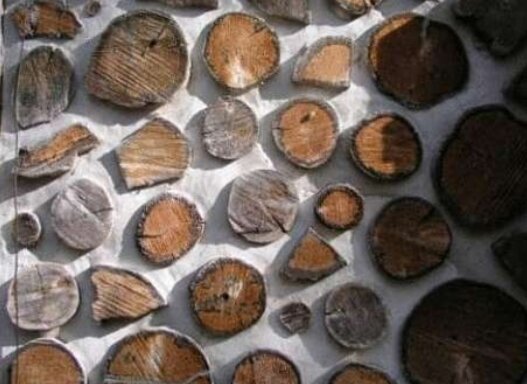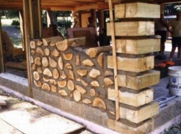 Zdi se skládají jako skládka dříví, v rozích každá řada se překrývají s řadami jiné zdi. Přes 50 až 70cm uděláno páskování z palcové desky. Slouží k narovnání.