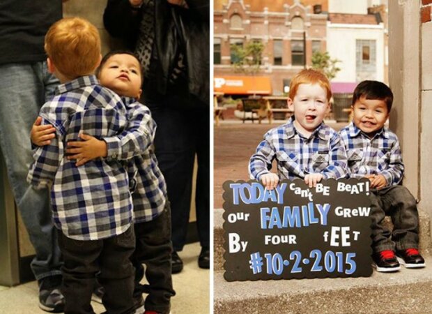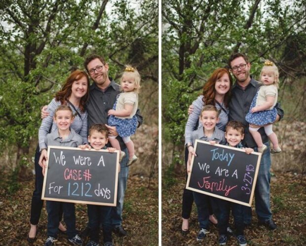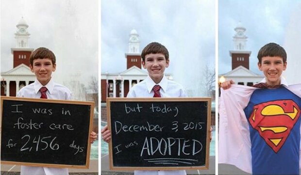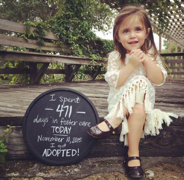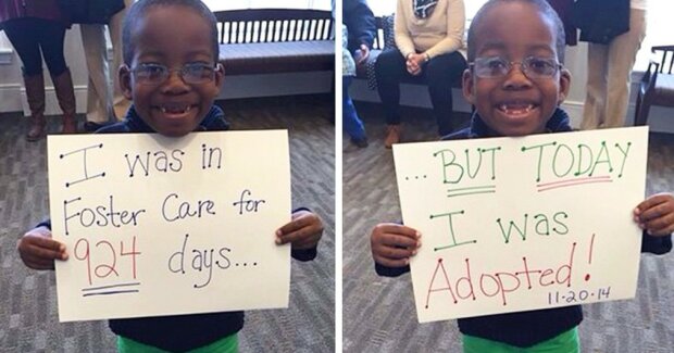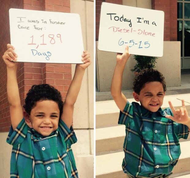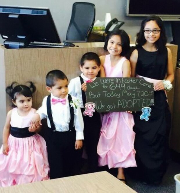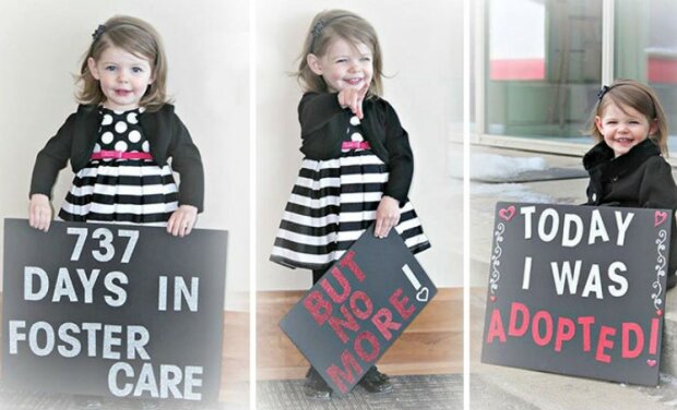 Organizace Together We Rise je dobrovolnické sdružení, které pomáhá sirotkům a pěstounům najít se navzájem. Fotky adoptovaných dětí zveřejňují na sociální síti, aby ukázaly, jak moc jim to štěstí přináší! Na fotografii děti drží cedulky s nápisem: "byl jsem (a) na patronátní výchově.... dny, ale dnes jsem byl adoptován / adoptován!»