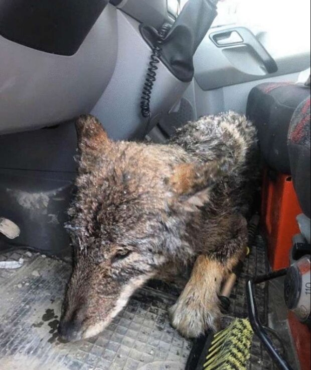 Vlk byl velmi vyčerpaný, i když muži přišli mu pomoc, nechal se zachránit.