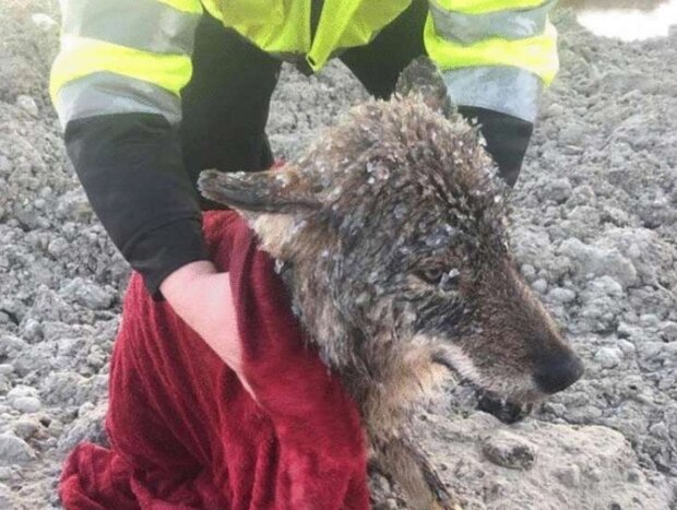 Dělníci okamžitě zareagovali a vytáhli nešťastného „psa“ na břeh: zabalili ho do ručníku a vložili ho do auta, aby se zahřál. Zvíře bylo velmi slabé a muselo být neseno v náručí až do auta. Jeden pracovník poznamenal, že vážil hodně.