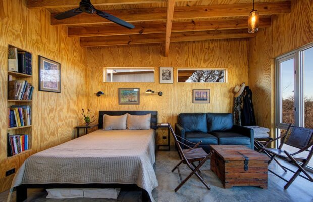 Domy mají rozlohu 37 metrů čtverečních a každý je vybaven velkou manželskou postelí, pohovkou, koupelnou a verandou. Uvnitř zdí domu jsou pokryty překližkou.