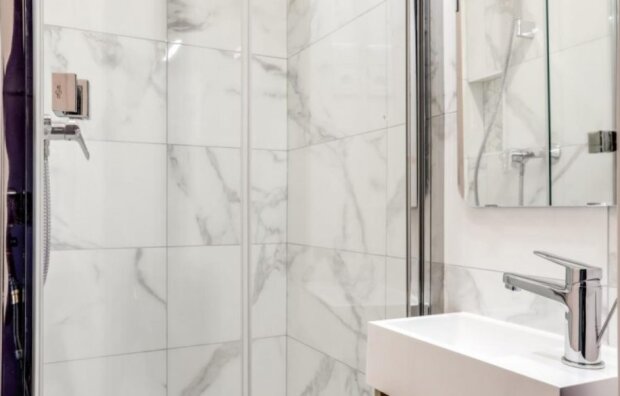 V jedné stěně koupelny byl „skrytý“ šatník. Přístup k němu je však pouze ze strany obývacího pokoje.