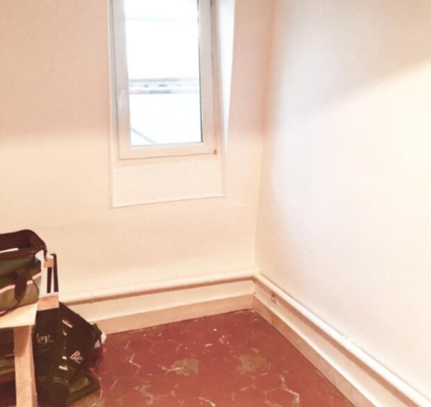 Velikost místnosti je ve skutečnosti malá: 2,2 x 4,6 metrů. Výška stropu - 2,6 metru. K dispozici je malé okno a dřez s kohoutkem. A je to všechno!