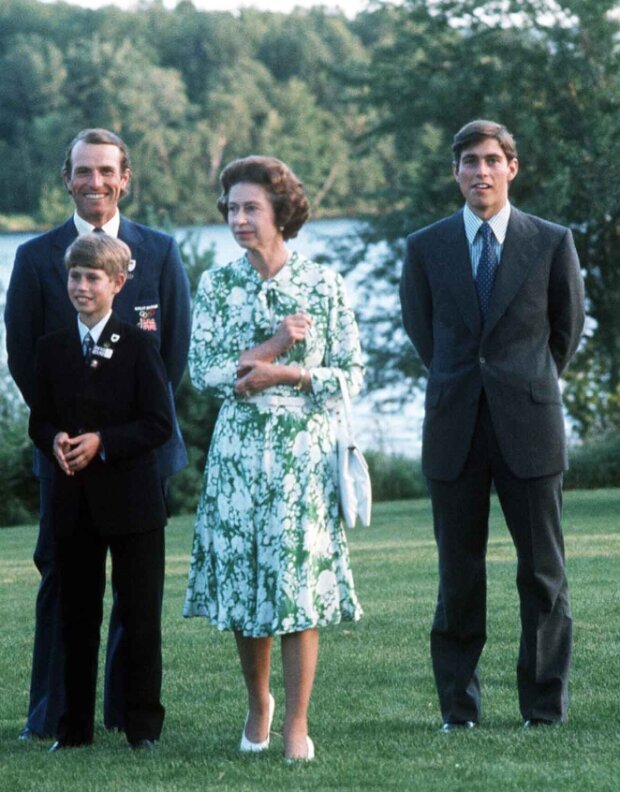 Královská rodina v Kanadě během olympijských her, 1976. Zdálo by se, že jsou to jednoduché šaty, ale královně moc sluší. Zelená je určitě její barva.