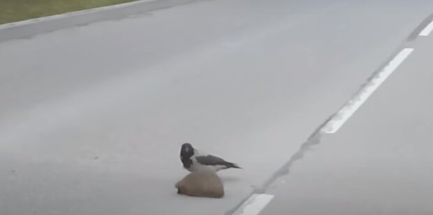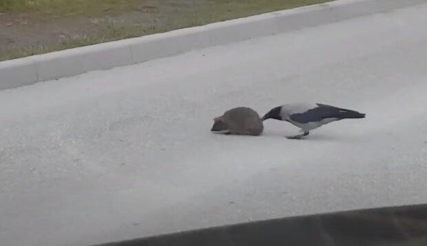 Ale v tomto videu, byla to vrána, kdo se zavázal zachránit ježka, který téměř dopadl pod autem. Co ptáka vedlo, není jasné.