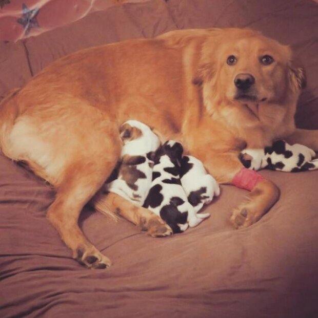 Čtyři děti měly černobílou barvu a spíše vypadaly jako malé telata než retrívři. Ale hlavně, že všichni byli zdraví.