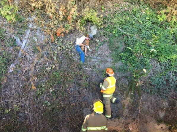 Na místě nehody dorazili hasiči a policisté. Zatímco tým rozhodoval o tom, jakým způsobem je lepší zachránit Huntera z potíží, přišel k nim člověk. Muž uvedl, že je bezdomovec, žije pod tímto nadjezdem a dobrovolně se přihlásil k odstranění psa z kopce.