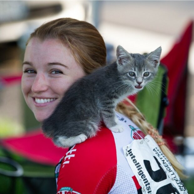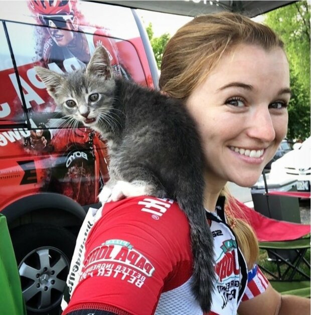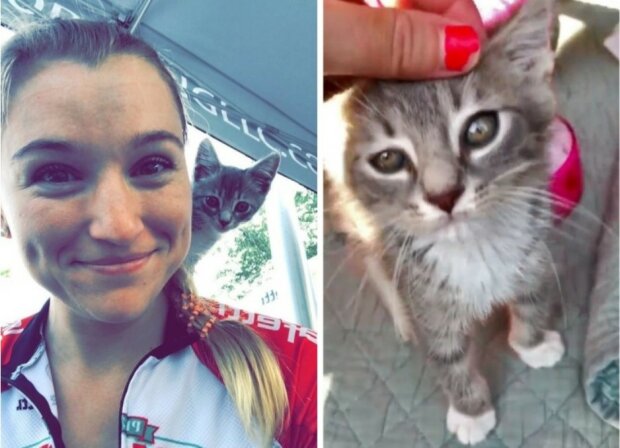 "Nevyhrála jsem závod, ale stejně jsem získala trofej, toto maličké pouliční koťátko" s úsměvem uvedla žena.