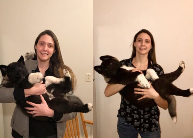 Daniel věděla, že Akita rostou velmi rychle, rozhodla se proto, tento proces sledovat pomocí fotografií. Poprvé byla žena fotografována se svým mazlíčkem v náručí, když mu bylo deset týdnů. Od té doby začala pořizovat fotky každý měsíc.