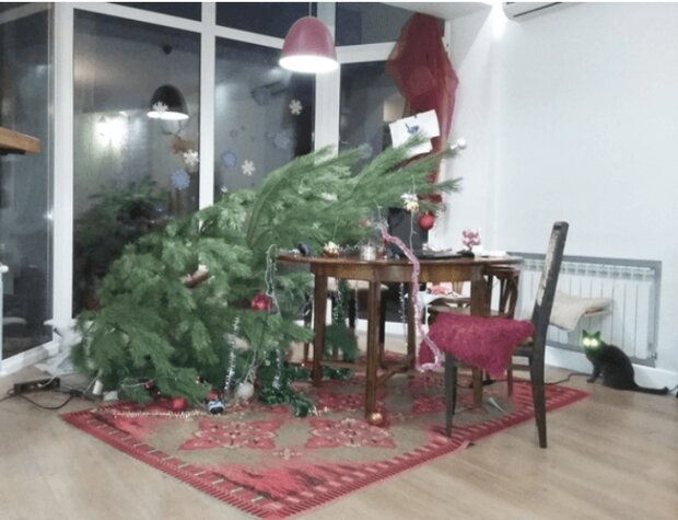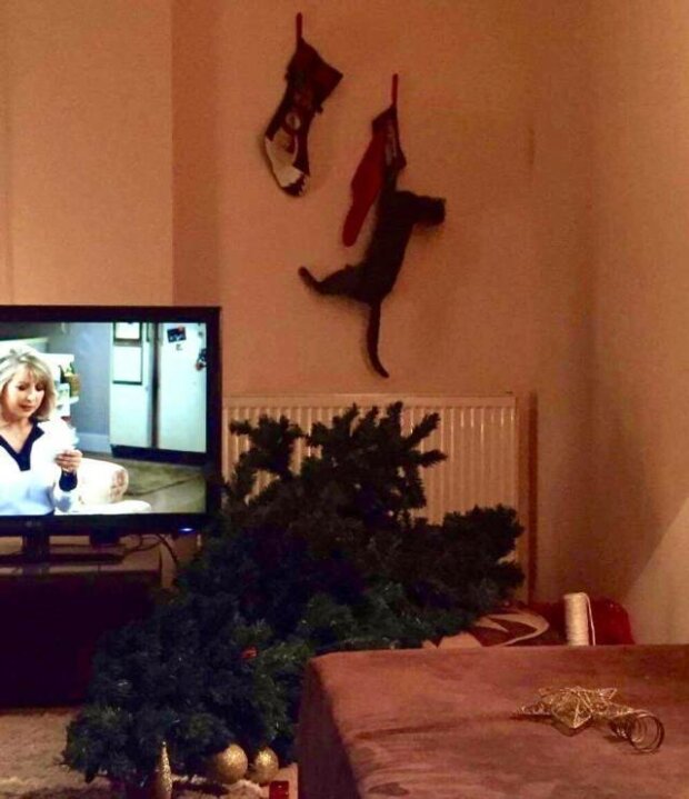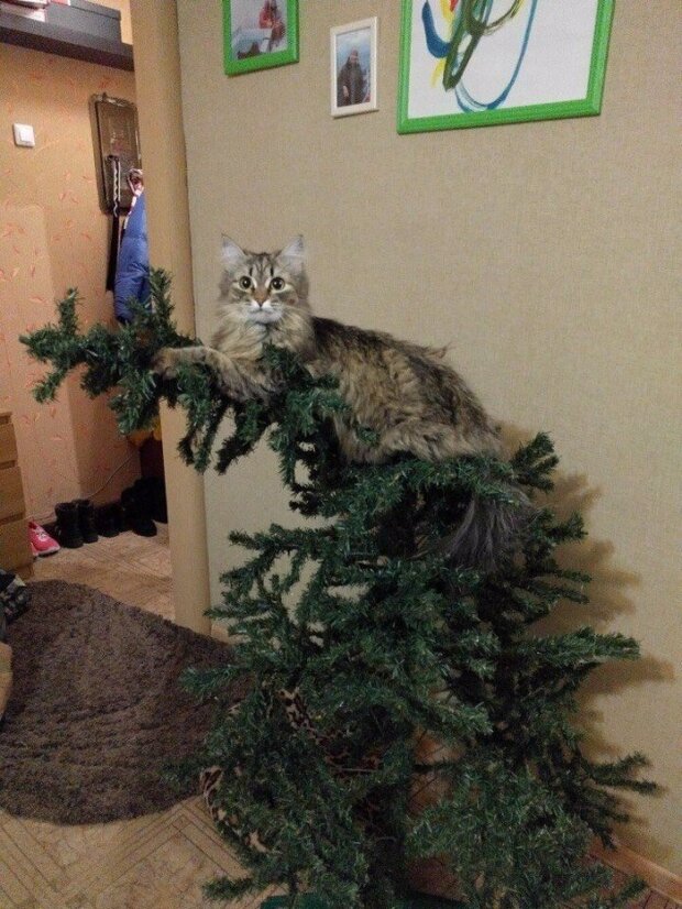10. Docela předvídatelné. Bylo nutné pevně přivázat. Jen to ještě není jasné: kočku nebo vánoční stromeček.