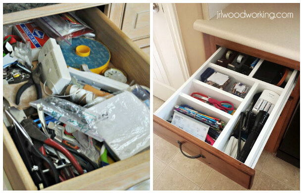 Poté: Stačí vložit několik děličů a krabice je nyní v plném pořádku.