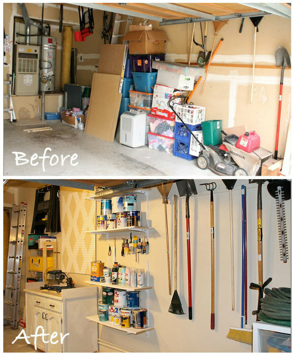 Poté: K uvolnění prostoru stačí zavěsit stojan na zeď, přibít háčky a na ně umístit nějaké věci. Mnoho prostoru je okamžitě uvolněno a vše je úhledně složené.