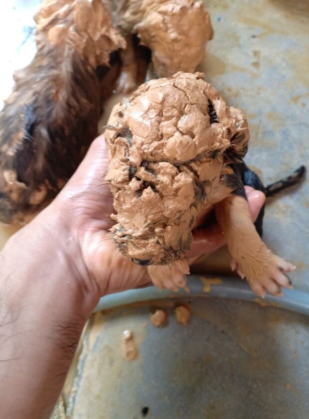 Ten chlap vzal všechna štěňata domů. Vzal den volna, aby věnoval den pomoci drobkům. Celá rodina mu pomohla umýt a vyčistit štěňata, pak je nakrmila a položila do postele.