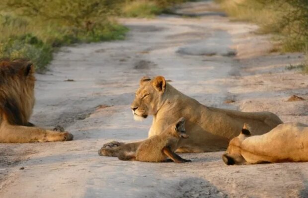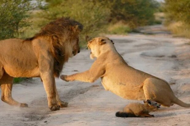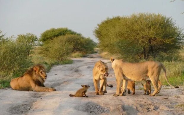 Nicméně téměř lidské emoce nejsou těmto zvířatům cizí. Pracovníci v národním parku v Botswaně byli svědky zajímavé scény. Viděli lví smečku, která se postupně pohybovala po silnici. Na jejich cestě leželo zmrzačené mládě lišky pouštní.