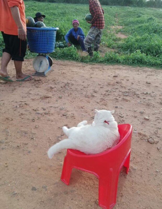 Seznamte se s tímto hezounem jménem Pearl. Bílý kocour se stal známý na Facebooku díky svému zlému pohledu a schopnost ho používat ve jménu ochrany melounů svých majitelů.