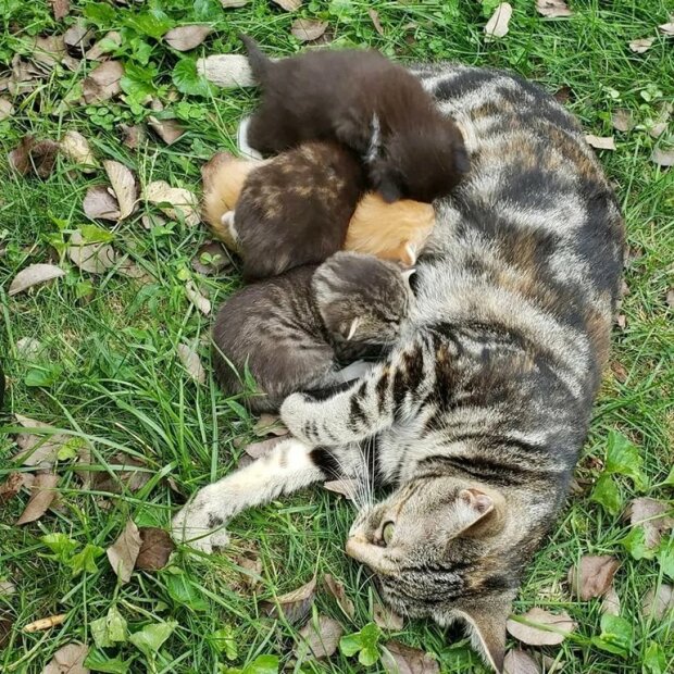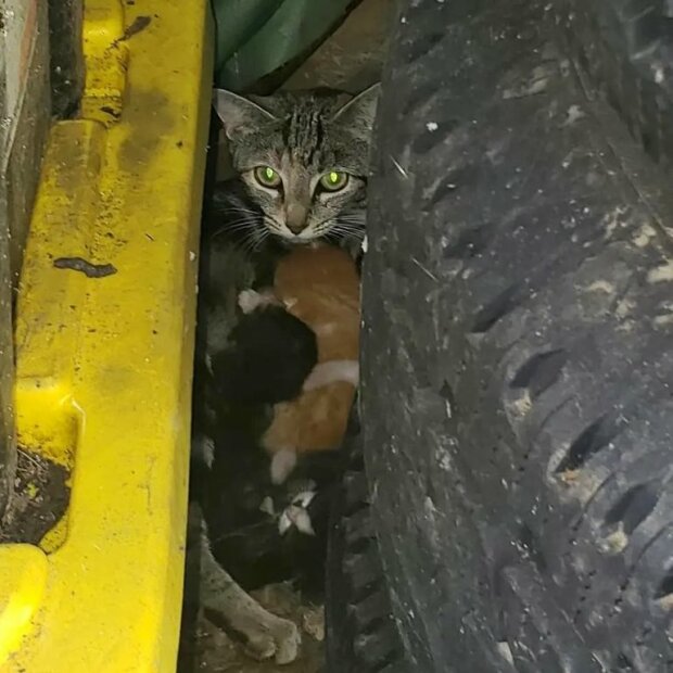"Jednou se najedla a já ji začal hladit, a pak se její důvěra ještě zvýšila." A pak Vanessa opatrně sledovala kočku a ona vedla ji rovnou k skrytému hnízdu blízko plotu za starými pneumatikami. Byly tam čtyři koťata.
