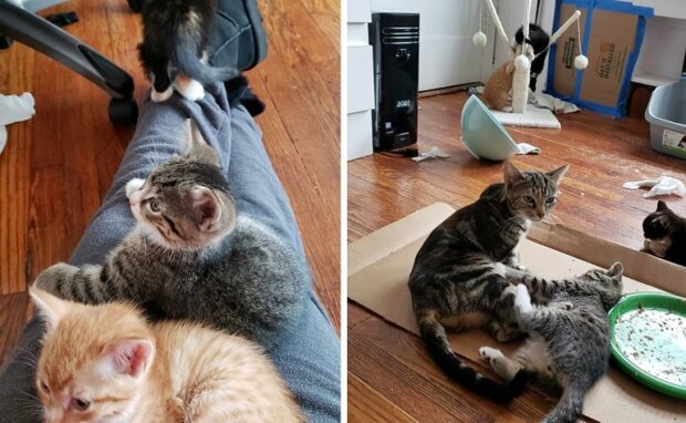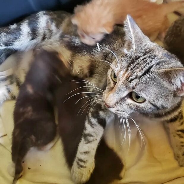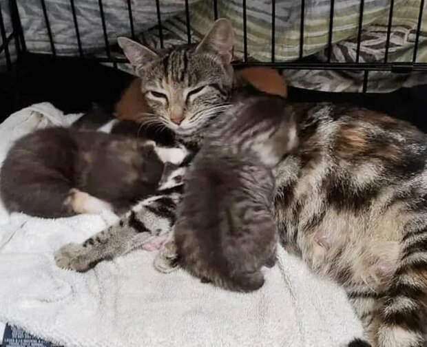 „Všechno šlo skvěle, kočka zřejmě chápala, že ona a její mláďata budou v pořádku. Přes noc si zvykli na nové místo.“