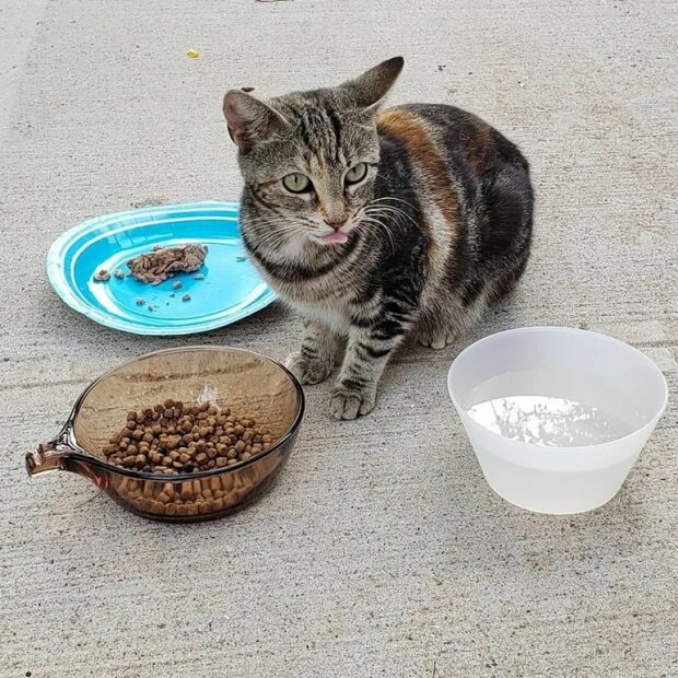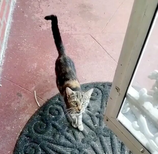 Jednoho dne se kočka právě objevila na verandě Vanessy domu a žalostně se posadila a prosila o jídlo.