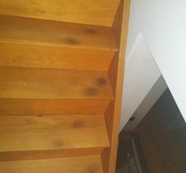 To jsou stopy psích tlap - po celých sedm let svého života vždy šla po stopách, když vystupovala po schodech