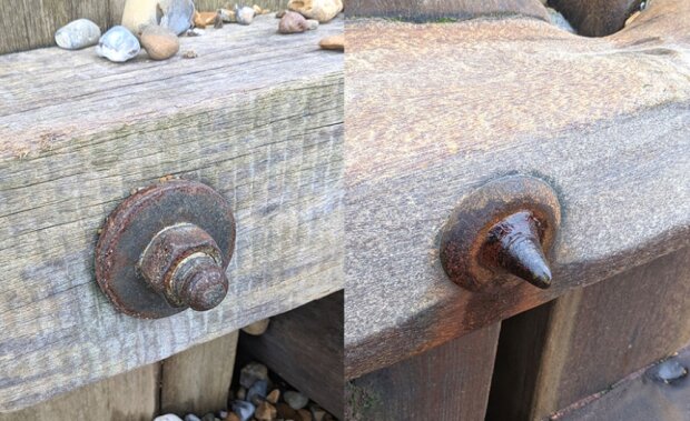 Někdy pravý šroub a matice vypadaly přesně jako levé, ale vlny a slaný vzduch blízko moře odvedly svou práci