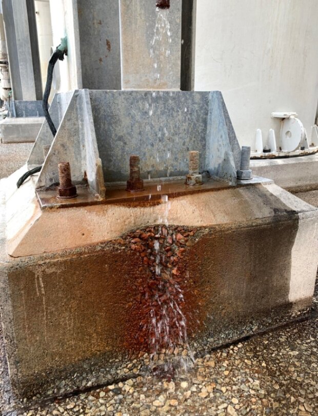 V průběhu let se voda vyhloubila betonový základ.