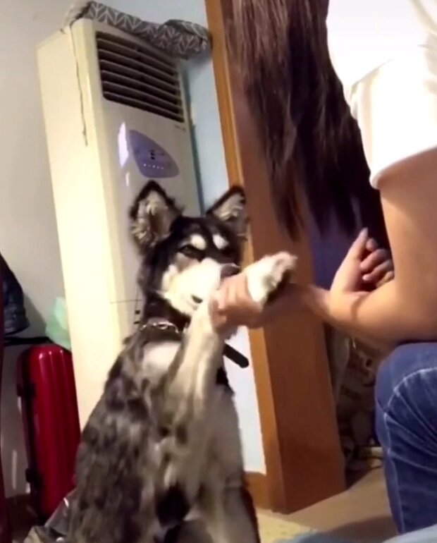 Možná předchozí majitel tohoto ubohého husky zemřel, nebo ho prostě vyhodili, ale na tom nezáleží, protože skončil na ulici. Lidé se psa vyhýbali kvůli jeho vzhledu, ale žena k němu projevovala náklonnost a už ho nechtěla opustit.