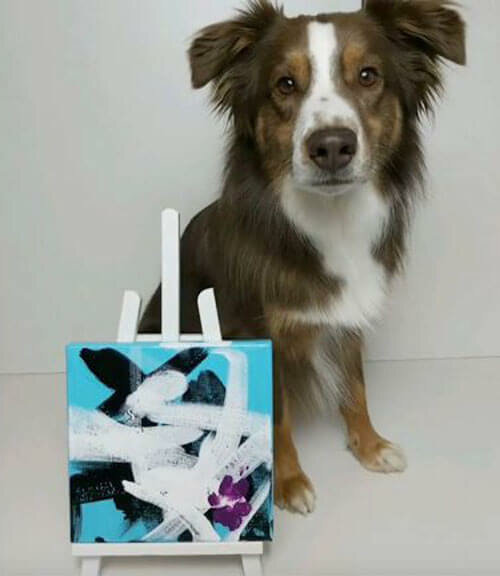 Inteligentní pes, ktery žije v Albertě (Kanada), užíval si všechny radosti z umění a byla to pro něj zábavna hra (zejména proto, že umělec dostává za malování pohoštění).