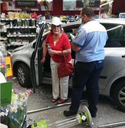Řidička silně vyděsila zákazníky a zaměstnance jednoho ze supermarketů v Rumunsku, když velkolepě vjela do místnosti a způsobila tam chaos.
