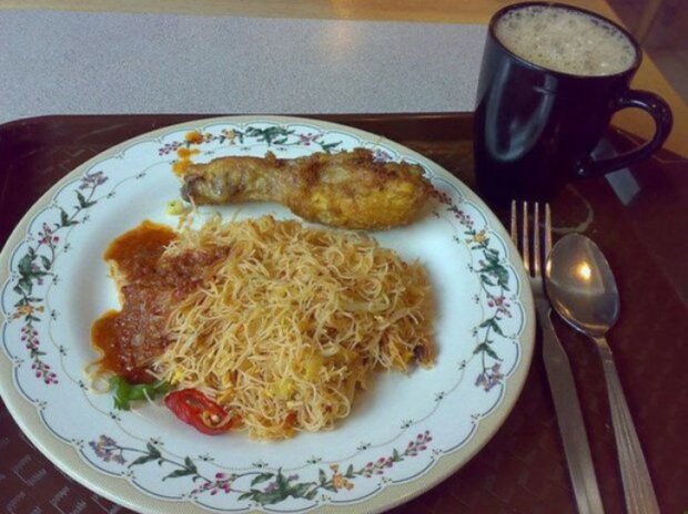 Polévka, kuře, rýže, konzervovaná zelenina.