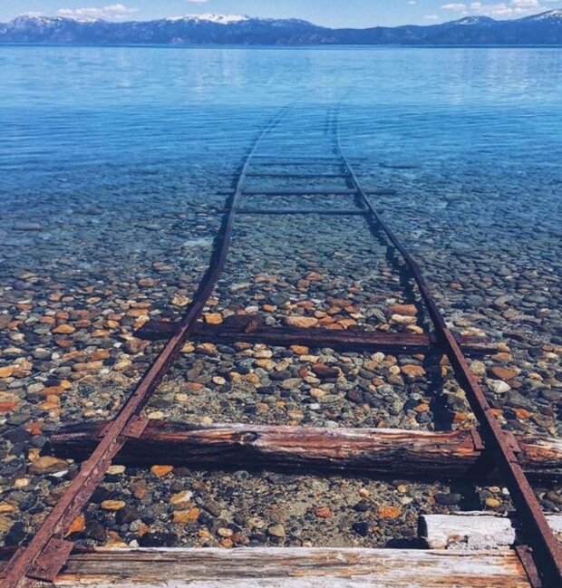 5. Zatopené kolejiště u jezera Tahoe v USA