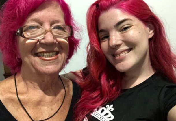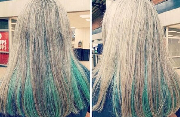 Patty syn, kolorista, šťastně pomohl své matce, a nyní starší žena pyšně ukazuje vlasy barvené v neuvěřitelně zářivé paletě barev.