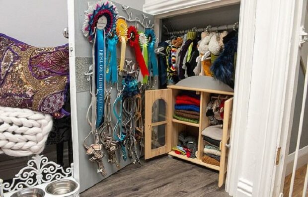 Není divu, že se Angličanka snaží koupit pro své domácí mazlíčky to nejlepší a nejmódnější. Každý pes má nyní dvě bundy, šest kabátů, 24 svetry, šest mikin, čtyři kožené bundy, čtyři košile, čtyři džínové bundy, devět šatů a devět triček.