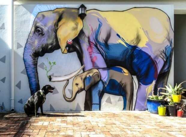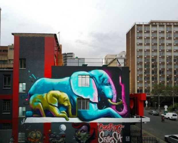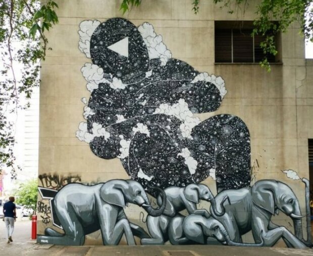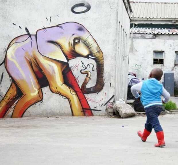 V roce 2010 Falco zahájil projekt Jednou ve městě a přeměnil chudé oblasti na galerie pod širým nebem, které přitahují turisty. Živé slony všech velikostí jsou nejrozšířenější jeho graffiti.
