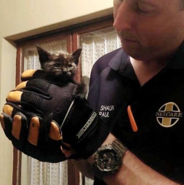 Muž šel na místo, kde bylo kotě uvězněno. Sean se hodně snažil dostat ho ze zajetí. Když Paul vzal kotě do náruče, chlupatý se celý vyděsil, třásl se strachem a zimou. Muž rozpoznal, že je to byla kočička, zabalil ji do ručníku a objal. Po chvíli se kotě dokázalo uklidnit a nakonec se zahřálo.