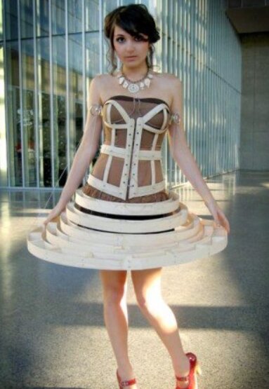 Dřevěné šaty. Návrháři použili dřevo a několik šroubů. S největší pravděpodobností bude takové šaty obtížné nosit.